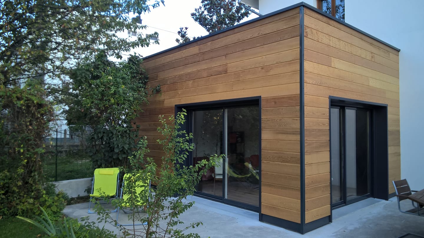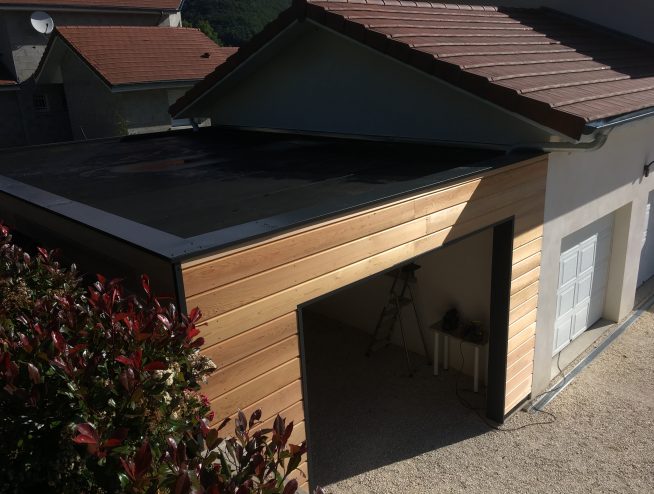 EXTENSION OSSATURE BOIS, TOIT PLAT , PORTE-FENÊTRE, ISOLATION,PARQUET