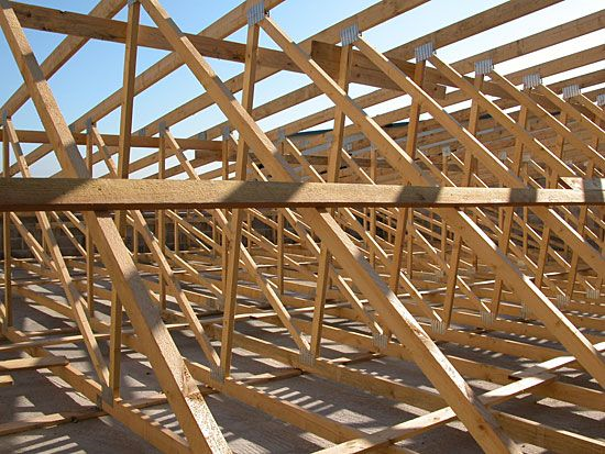 Un assemblage de poutres (ou fermes) supporte l’ensemble du toit et repose sur les murs porteurs, des poteaux ou bien sur la panne faîtière. Un chevron répartit le poids de la toiture sur les pannes. Des liteaux sont ensuite posés perpendiculairement aux chevrons pour recevoir la couverture de toit.