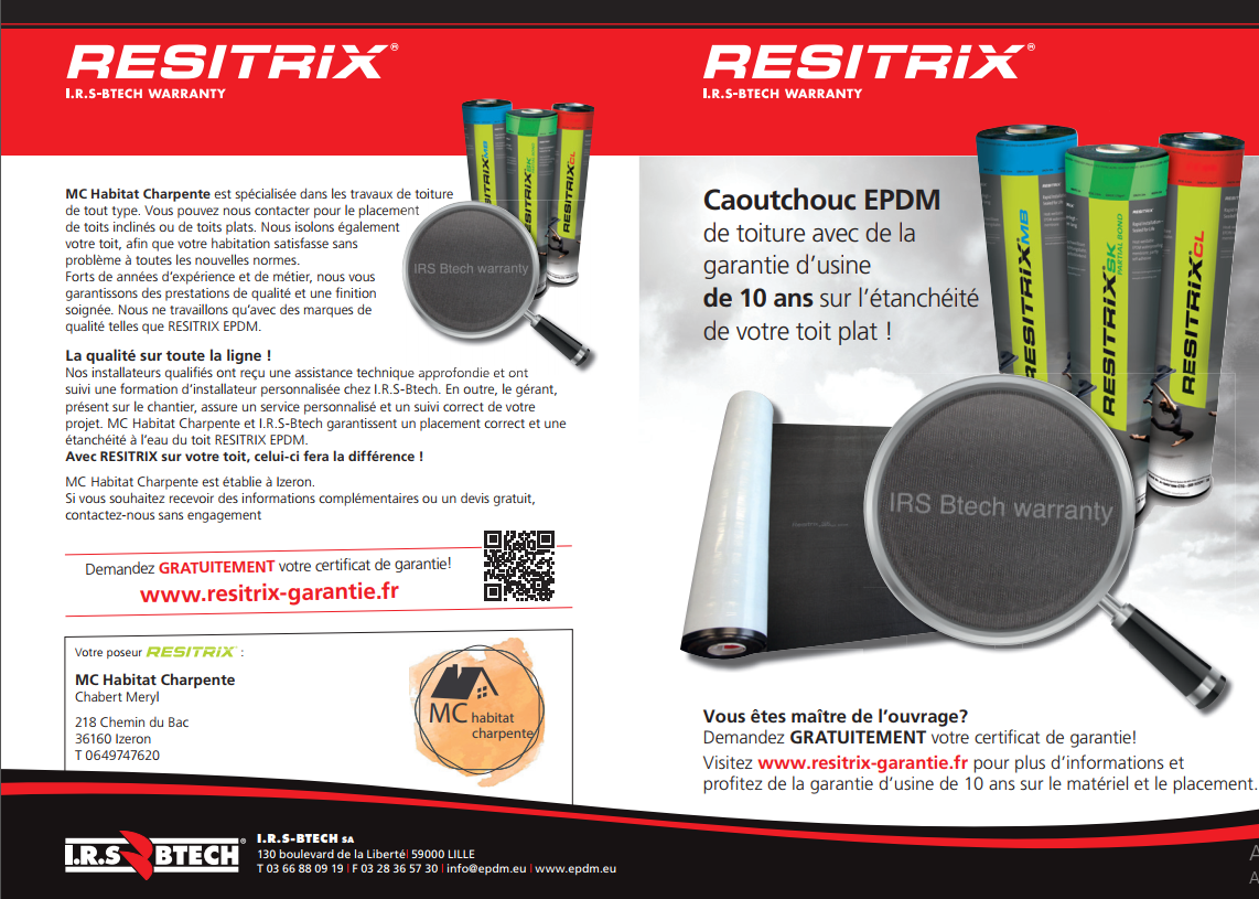 RESITRIX®, le top en produits EPDM pour étanchéité de toit, offre une solution durable pour la couverture des toitures plates de tous types. RESITRIX est une membrane de finition de toiture en EPDM pourvue d’une armature interne en fils de fibres de verre. Ce treillis interne assure la stabilité dimensionnelle et offre une excellente résistance aux déchirures. RESITRIX possède une sous-couche de bitume SBS.
